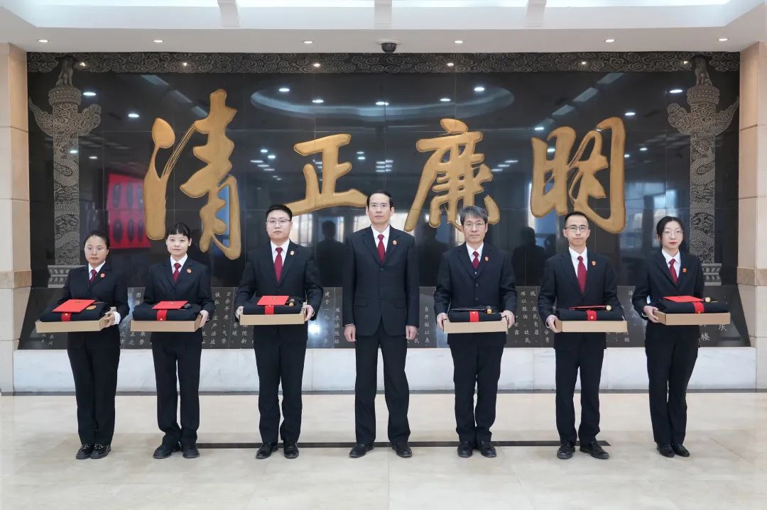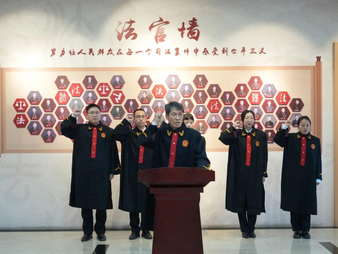 “我宣誓:忠于中华人民共和国宪法,维护宪法权威,履行法定职责,忠于祖国、忠于人民,恪尽职守、廉洁奉公,接受人民监督,为建设富强民主文明和谐美丽的社会主义现代化强国努力奋斗!”在尤文军副院长的领誓下,6名初任法官面向国旗,举起右手,庄严宣誓。誓言铮铮,目光坚毅,他们对党、对国家、对人民作出庄严承诺。