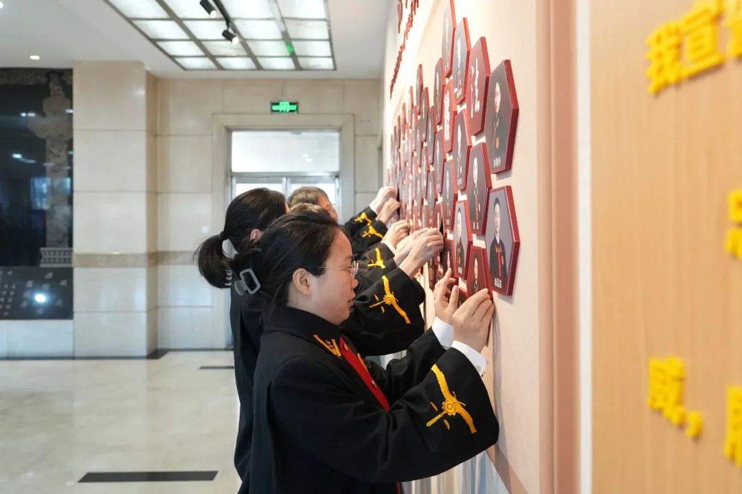 初任法官们将自己的法袍照郑重悬挂于法官墙,亮明身份,传承初心,汇聚起“我们”清晰奔赴的信仰。