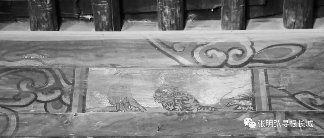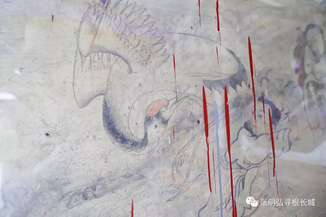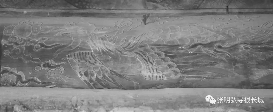 殿顶保存下来的清代壁画和沥粉凤纹,流畅古雅。