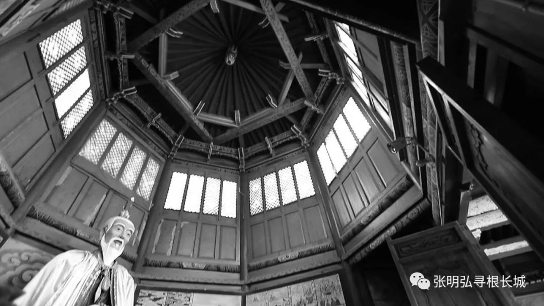 祖师殿是八角斗拱中空结构,内部供奉太上老君。北东西三墙,满满绘制了太上老君八十一化的图说。