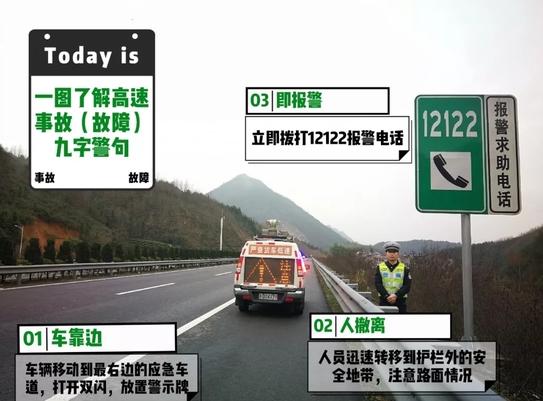 车辆出现险情或发生事故,及时拨打报警电话求救,如有人员受伤,及时拨打120急救电话,驾驶人和乘车人要迅速下车,撤离到公路外的安全地带,以防止二次事故的发生。即:车靠边、人撤离、即报警。