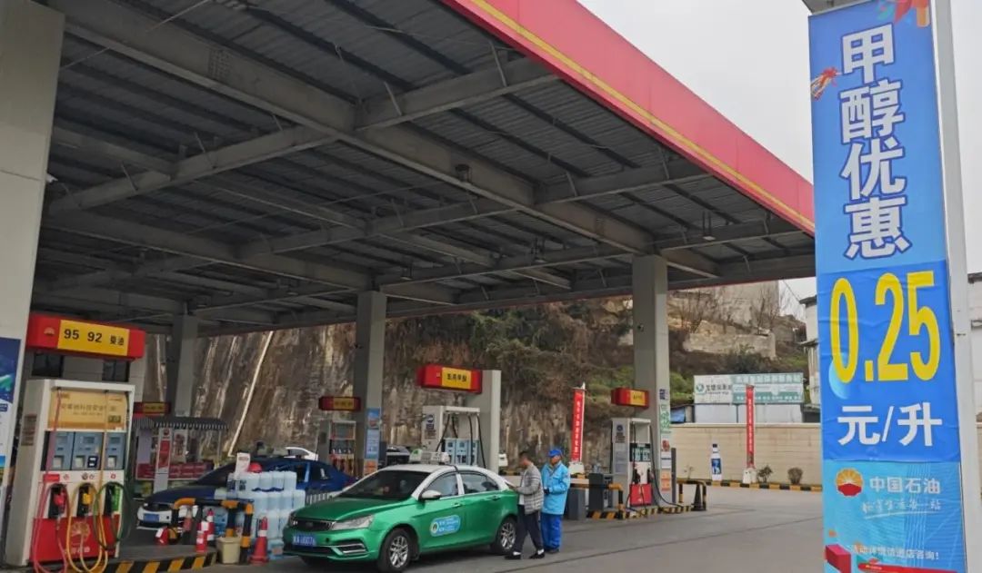 兴筑加油站在这一背景下,贵州销售贵阳分公司兴筑加油站积极响应,设置M100甲醇加注服务,配备了2台甲醇加油机,日均甲醇销量可达18吨,最高时日均销售35吨。现在,兴筑加油站还推出甲醇优惠活动,每升甲醇直接优惠0.25元。