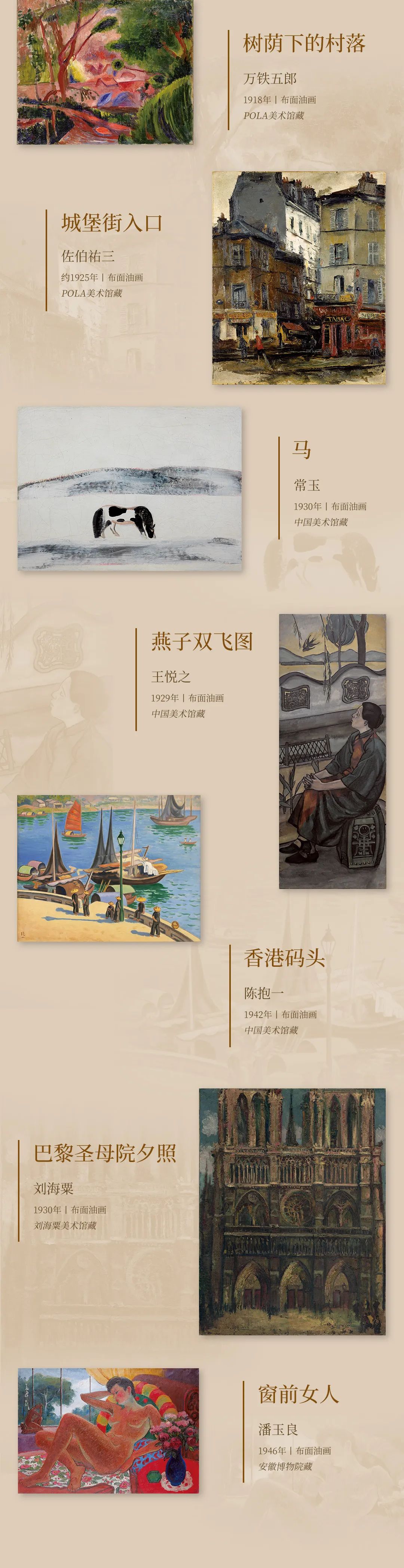 本次展览重磅汇聚了一批欧洲艺术巨匠的精彩作品,为观众诚意奉上一场盛大热烈的艺术派对。这份华丽的“派对名单”包括库尔贝、柯罗、马奈、莫奈、西斯莱、毕沙罗、雷诺阿、塞尚、梵高、高更、马蒂斯、布拉克、毕加索等。亚洲艺坛亦有黑田清辉、刘海粟、潘玉良、草间弥生、杉本博司等名家呈现。