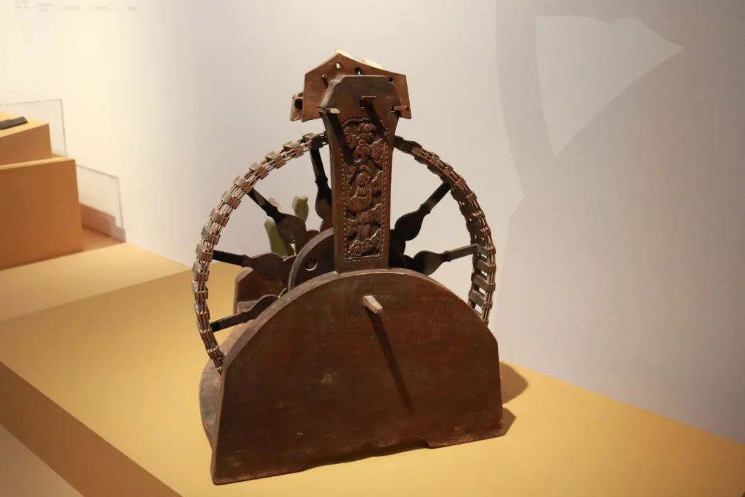 木雕黄道婆像三锭脚踏纺车 海南省博物馆藏