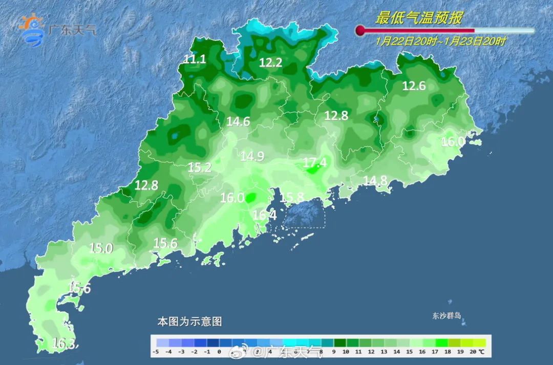 由于云量增多本周广东各地最低气温