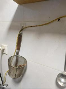 整改后危害分析:花线材质不安全,极易造成短路,且厨房内有燃气,极易引起火灾。
