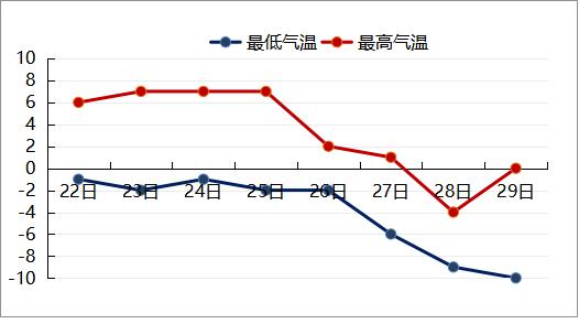 图 1月22日—29日气温预报(单位:℃)莱西市气象台21日15时发布