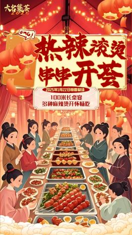 1月23日(腊月二十四)在大名宋街拉开帷幕,通过一系列丰富多彩的文化体验与祈福仪式,营造浓厚的节日氛围。游客们身着汉服,漫步于街区之间,参与英歌舞、NPC巡街互动、经典戏曲表演等精彩活动,感受传统文化的独特魅力。与此同时,石刻博物馆内的拓菩学院“一纸传古韵 拓福迎新春”同步启动,“麒麟献瑞”、“名城纳福”、“玉巳聚福”、“灵蛇纳吉”等拓福活动吸引游客参与互动。