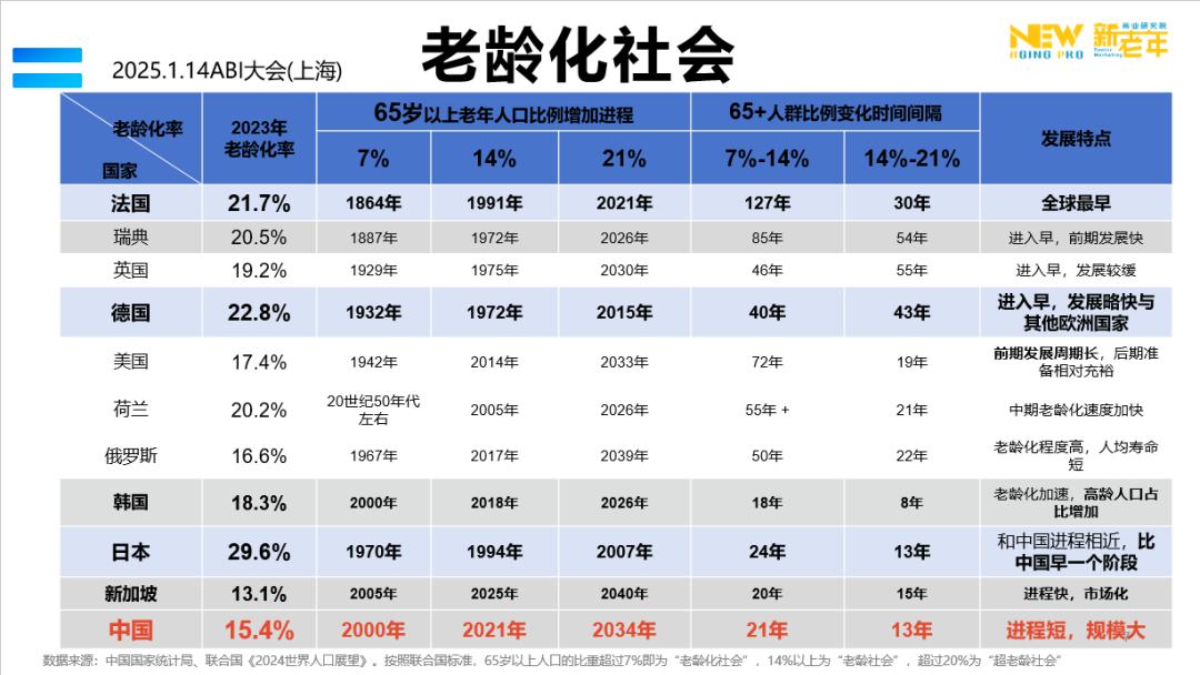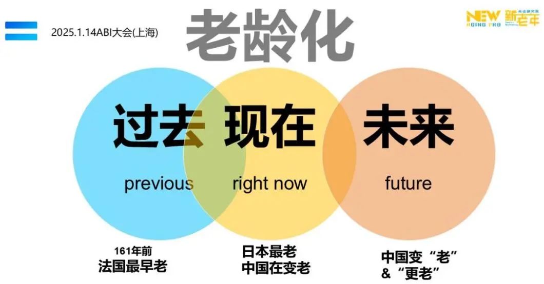 第一,讲过去、现在和未来。很多国家和地区老龄化比我们早很多,161年前,法国是全世界最早老的国家,全世界由此意识到什么叫老龄化。当下,日本是全世界最老的国家,2023年老龄化率已经达到29.6%了;中国则是刚进入中度老龄化,我们在变老的过程中。