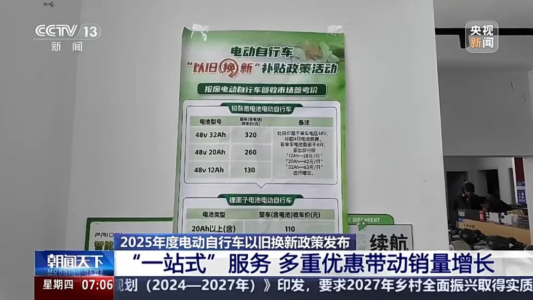 目前,各地都在延续去年电动自行车以旧换新政策,消费者换购铅酸蓄电池电动自行车的热情高涨,商家提供一站式服务,便利消费者交旧换新。