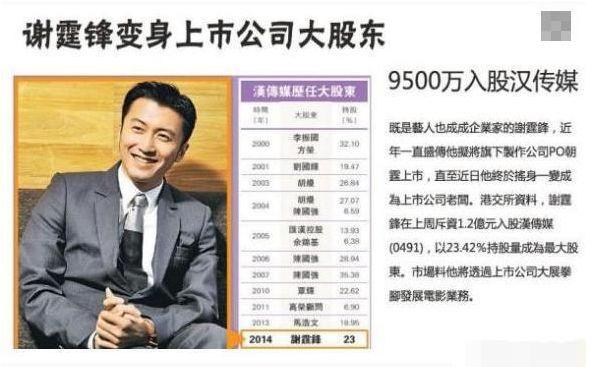 很长一段时间,谢霆锋出现在公众视野,都是在财经新闻中。
