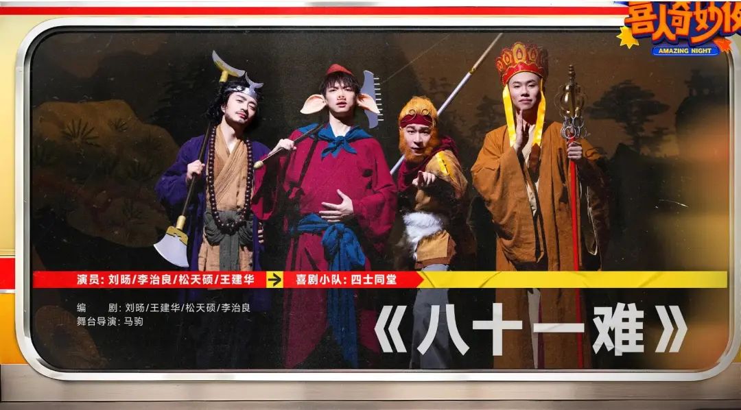 首先,喜剧阵容从专业的喜剧明星变成了“名人大杂烩”,各路实力派演员、偶像明星,甚至是主持人、歌手都上来凑个热闹。乌泱泱一群人,啥剧本也hold不住这流水的明星。没办法,这年头演员有知名度、有流量,自带关注,而歌手在春晚上可以唱歌,演员除了在台下圆桌边吃零食鼓掌,也得上台找点事情做做。