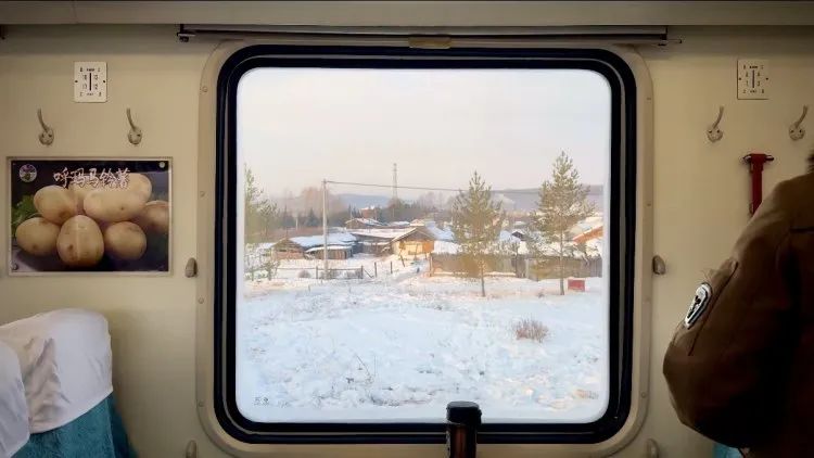 随着列车驶进山岭,窗外风景从城市渐渐变成茫茫林海雪原。8时许,太阳在大兴安岭上空升起,晨雾渐渐散去,窗外景致愈发分明,枝头上的雾凇清晰可见。