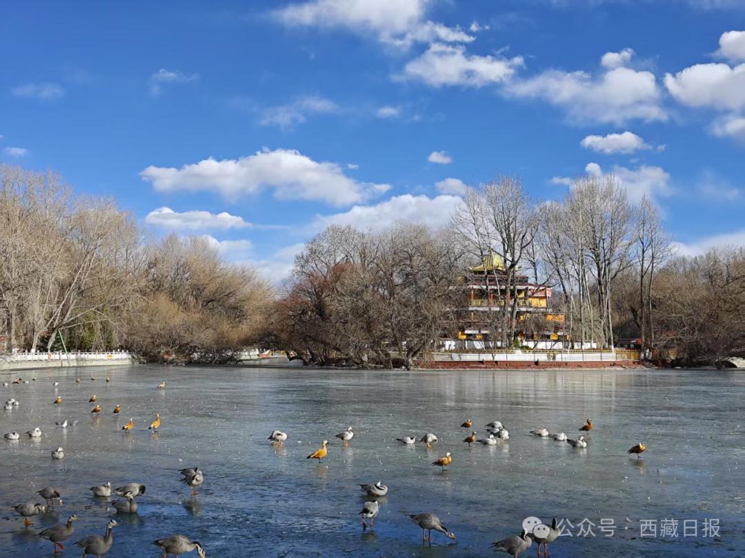 图为宗角禄康公园。(资料图)布达拉宫广场往北步行大约十分钟,就是宗角禄康公园,不仅可以加入跳锅庄的队伍,在冬日还可以欣赏湖面嬉戏的各种水鸟——赤麻鸭、斑头雁、红嘴鸥等。