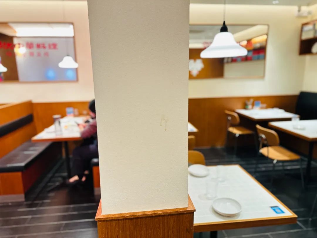 ○ 柔和明亮的灯光打在雪白的瓷砖桌面、透过贴着节日彩条的玻璃窗露出木质花纹的墙面,这是一家看起来就很像“家”的餐馆,满足的也是漂泊在外的异乡青年对家常味道的向往。