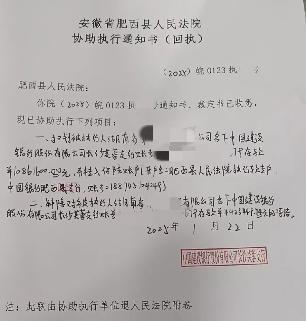 安徽某公司与湖南某公司建设工程施工合同纠纷案件判决生效后,1月17日周五原告公司向肥西法院申请强制执行,执行标的1000余万元。本案诉讼过程中已线下保全了被执行人账户600余万元。临近年关,考虑到这笔执行款关乎一百余名农民工的工资,委托扣划需要15个工作日,1月19日周日展翼行动启动,执行干警立即动身前往湖南长沙进行线下查控,发现湖南某公司账户有400余万元账款进入,足以支付执行款项。在长沙建设银行,干警远程与身在院执行指挥中心的党组书记、院长王丽连线。在王丽的指挥下,快速精准安全地将1086.16万元案款扣划,成功维护申请人权益,同时让农民工安“薪”过年。Part.