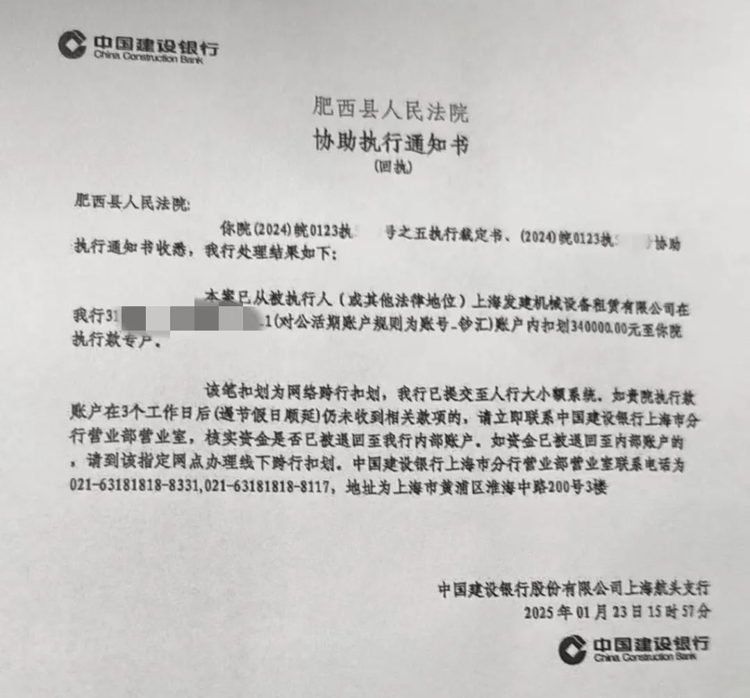 根据线索得知,三起执行案件被执行人某建设公司在北京某财务公司有部分存款,1月23日,北方小组再次赶到北京某财务公司将全部标的款222764.27元扣划执行款专户,该三起案件成功执结。Part.