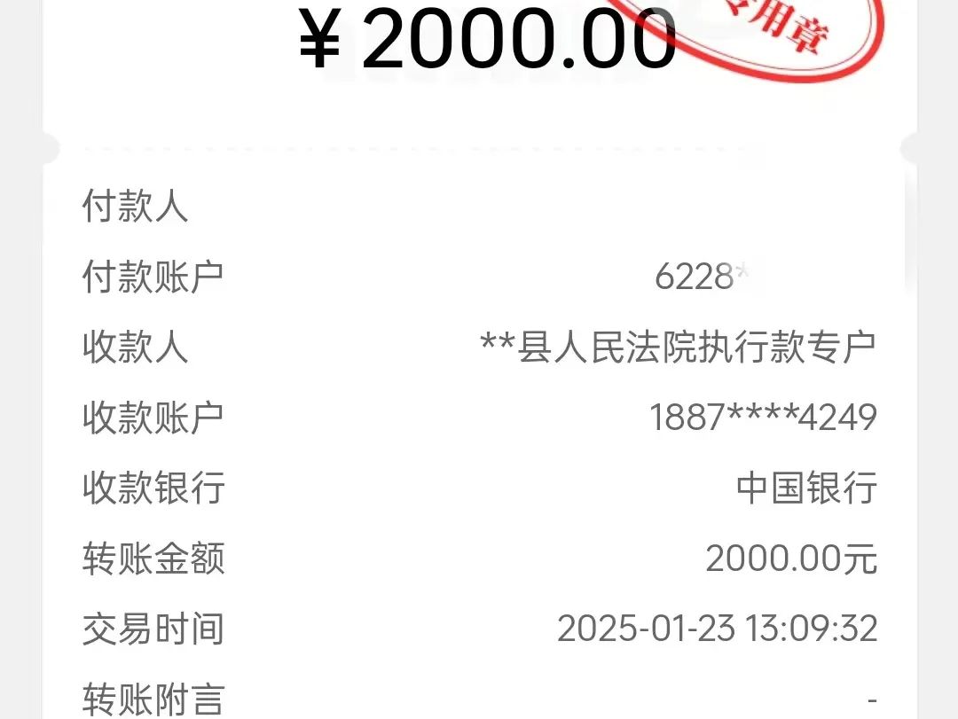 1月23日,通过多方调查,黔渝小组找到被执行人胡某老家,通过其家人成功与其取得联系,执行干警耐心释法,向其强调拒不履行义务所要承担的相关法律后果,迫于执行压力,被执行人胡某支付执行款项209689元。