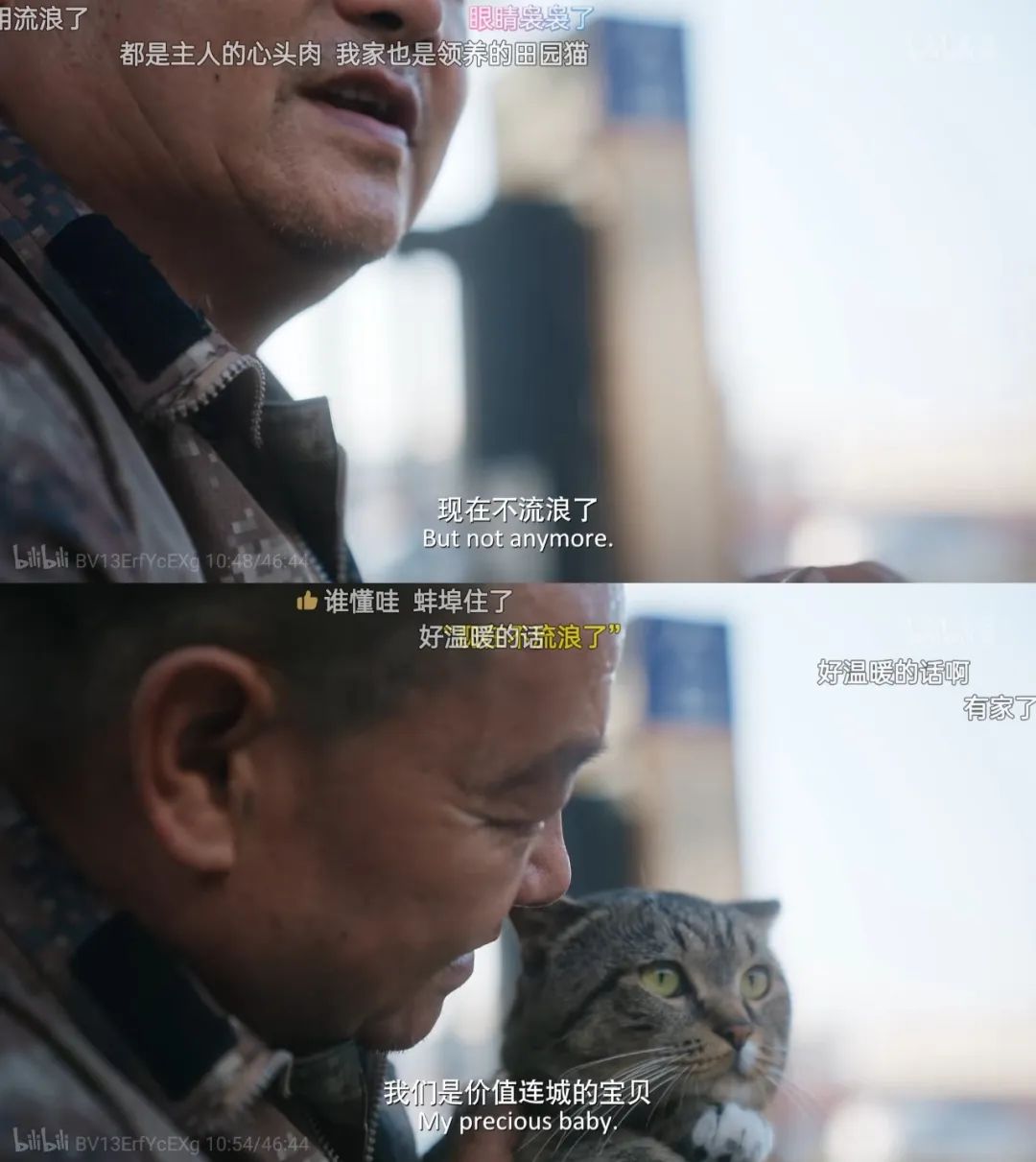 等待卸货时,王天军跟小猫们聊天。(图/《养猫的人》)主人与宠物,救助者与被救助者,住在一起的家人、伴侣或室友,孤独时唯一的慰藉,生命里短暂邂逅的过客……在《养猫的人》中,人与猫之间难以定义的关系被一一呈现。人猫之间的情感羁绊,也看哭了无数前来“吸猫”的观众。有网友在评论区留言:“满怀笑意进来的,现在哭得走不出去。”