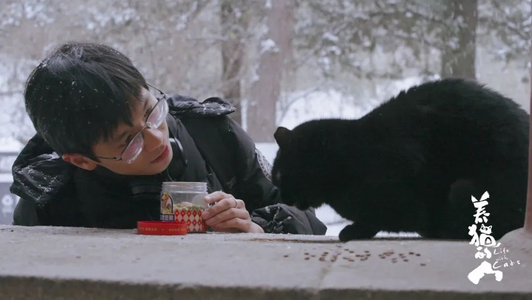 在人与猫的互动中,距离一点点拉近,二者的关系逐渐被塑造。也因此,主创团队一度考虑过将“养人的猫”用作片名。