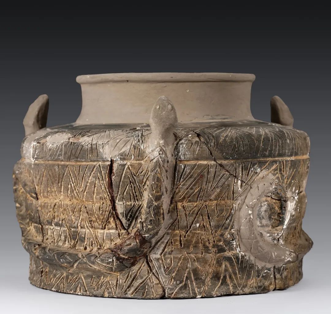 二里头文化 陶堆塑龙蛇纹透底器二里头遗址博物馆藏