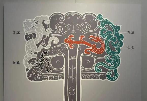 上海博物馆藏有一件汉代玉胜,在上下左右非常规律地雕刻了青龙、白虎、朱雀、玄武,两侧隔栏上还刻有“长宜子孙延寿万年”的字样,玄武仍然由龟蛇组成。