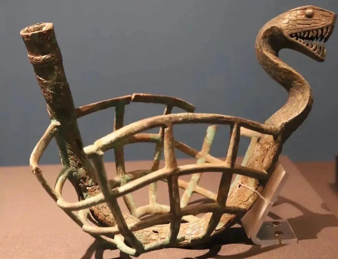 西汉 蛇头镂空铜器云南李家山青铜器博物馆藏