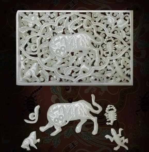 在其后很长的一段时间内,不知为何,玉器中蛇的形象几乎绝迹,直到辽代陈国公主墓中,蛇作为五毒之一与猴、蝎子、蟾蜍、蜥蜴,共同成为组佩挂件,此种情况一直延续至明清。隋唐宋元辽金