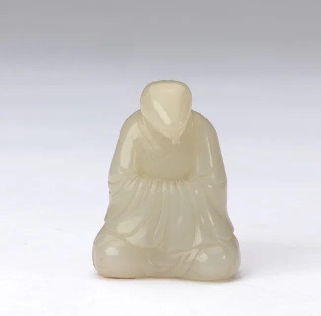 清代,玉蛇在雕刻工艺上体现了精细和生动的特点,展现出良好的动感和生命力。此件青玉十二辰-蛇,以拟人化的形象表现,兽首人身,身着交领长衫,席地而坐,双手拢于袖。