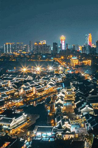 古镇在灯光的映照下如梦如幻