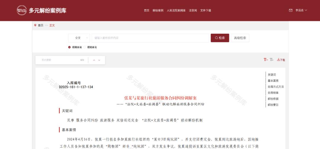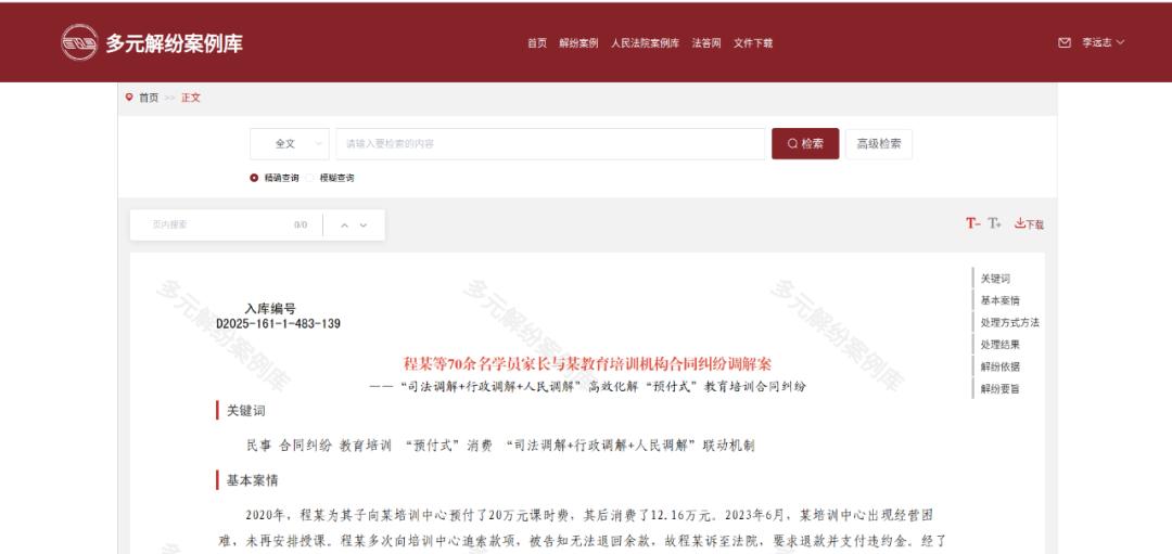多元解纷案例库是最高人民法院建设的多元解纷类案检索平台,收录由全国四级法院和部委、调解组织经过层报后评选入库的具有参考示范作用的案例。