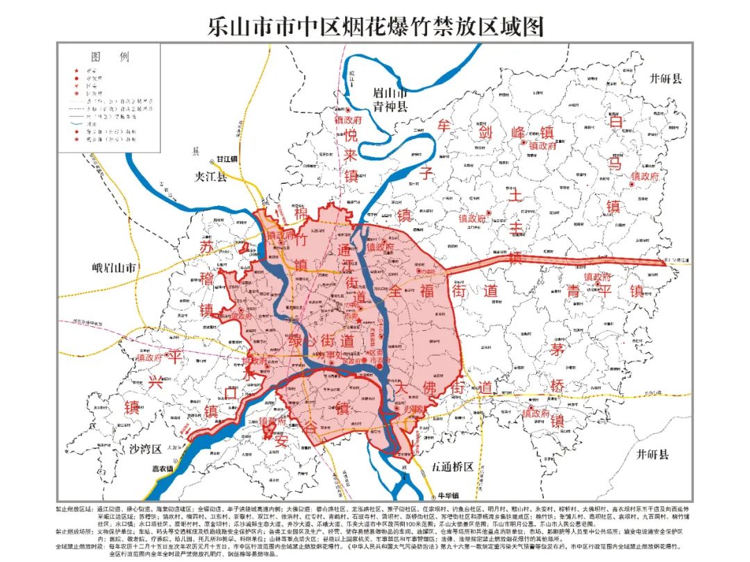 乐山市市中区烟花爆竹禁放区城图全年全时段禁止燃放场所