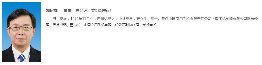 资料显示,魏应彪,男,汉族,1972年11月生,四川达县人,中共党员,研究生,硕士。曾任中国商用飞机有限责任公司上海飞机制造有限公司副总经理、党委书记、董事长,中国商用飞机有限责任公司副总经理、党委常委。