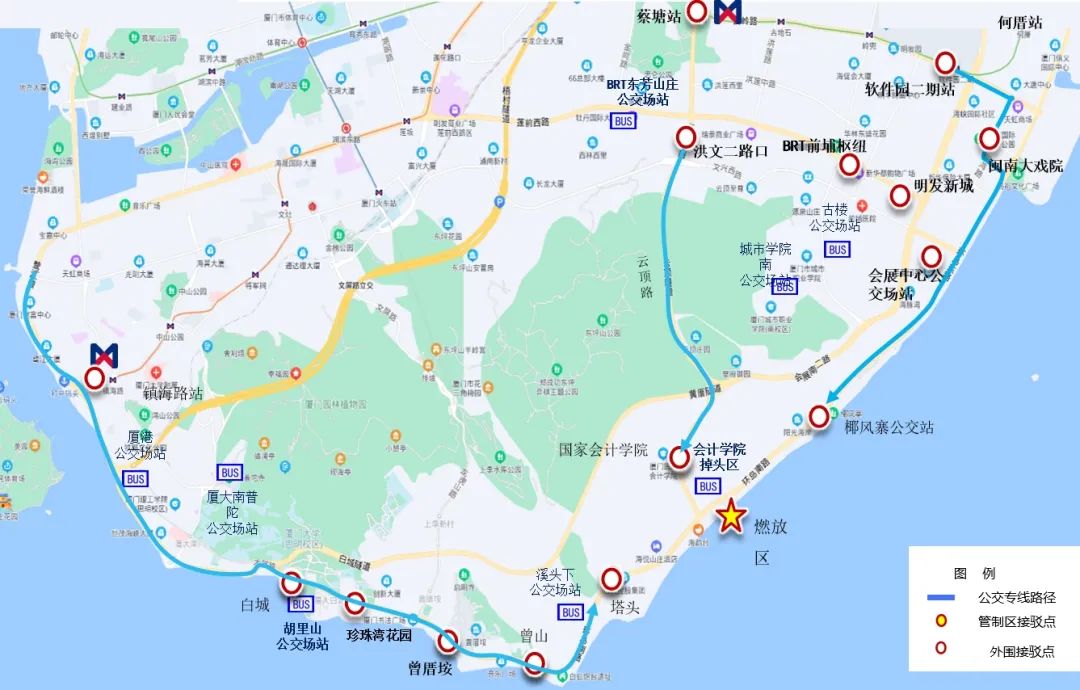 8点交通管制后,公交车辆行至环岛路太阳湾调头区(西向)、环岛路-环岛路椰风寨公交站(东向)、国家会计学院(北向)调头组织,接驳服务至18:30。临1路(地铁岭兜—椰风寨):去程地铁岭兜站始发,经金山路、吕岭路、展鸿路、前埔北路、环岛东路、环岛南路至椰风寨;返程椰风寨始发,经环岛南路、环岛东路、会展北路、展鸿路、前埔北路、环岛干道、吕岭路、金山路至地铁岭兜站。