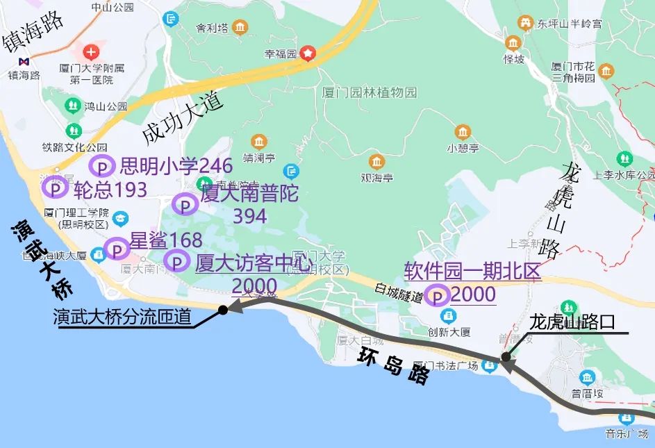 社会车辆经演武大桥、演武路、大学路或环岛南路、曾厝垵西路至厦大片区停车,换乘临2路公交车至溪头下下车抵达观看区。共享单车管理