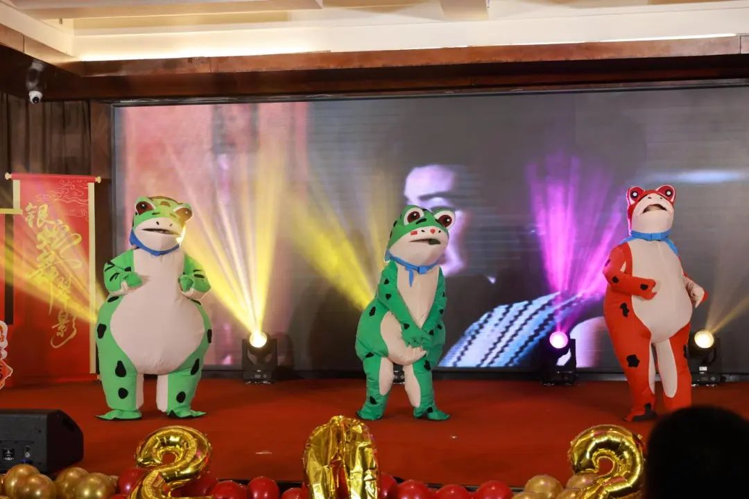 立案二庭带来创意舞蹈《蛙蛙舞》,干警们装扮成可爱的青蛙秀起诙谐的舞姿,引得现场阵阵掌声。