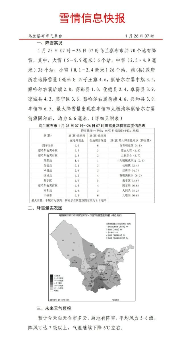 原标题:《双预警齐发!乌兰察布发布最新雪情快报→》