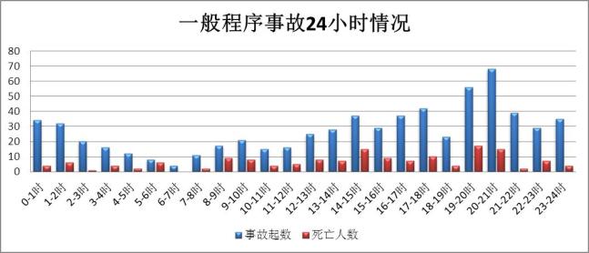 (三)初二至初六事故高发,晚间事故突出。从春节假期逐日事故分布情况看,年三十至初六事故呈现逐日上升趋势,假期第3天(年初二)事故增长明显,并持续保持高位。从事故发生的时段看,晚间19-21时一般程序事故高发,事故起数占总数18.96%。