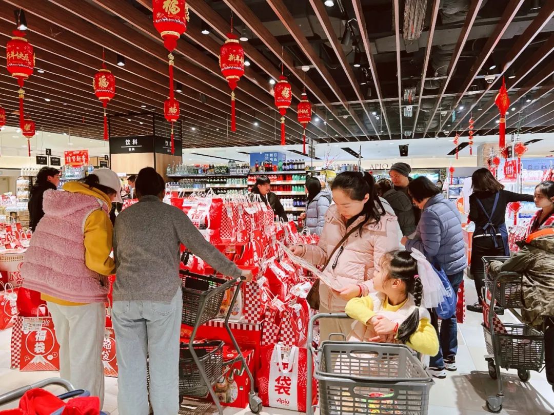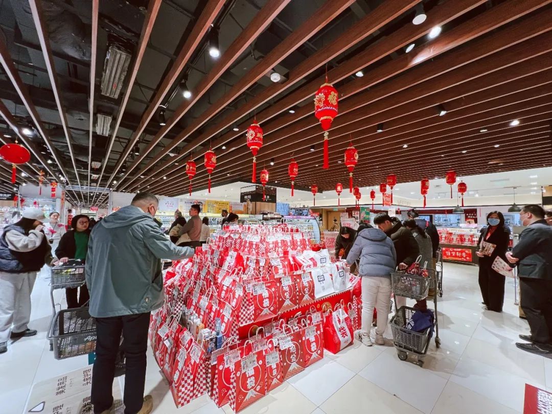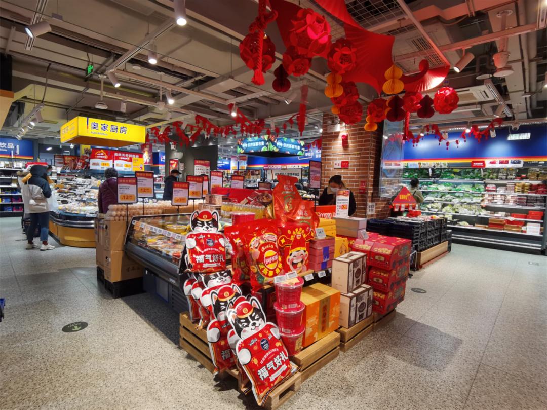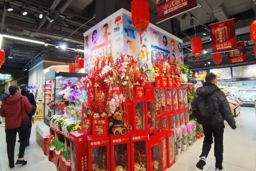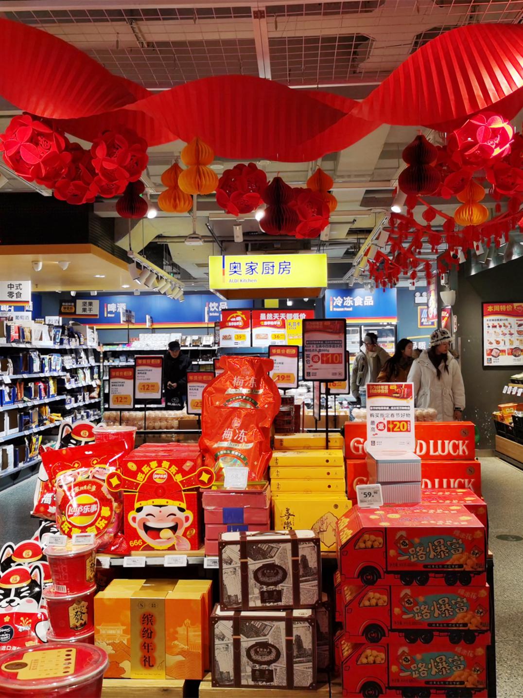 春节将至,长宁超市纷纷切换模式,围绕新春主题进行了精心布景,让购物场景更有年味。