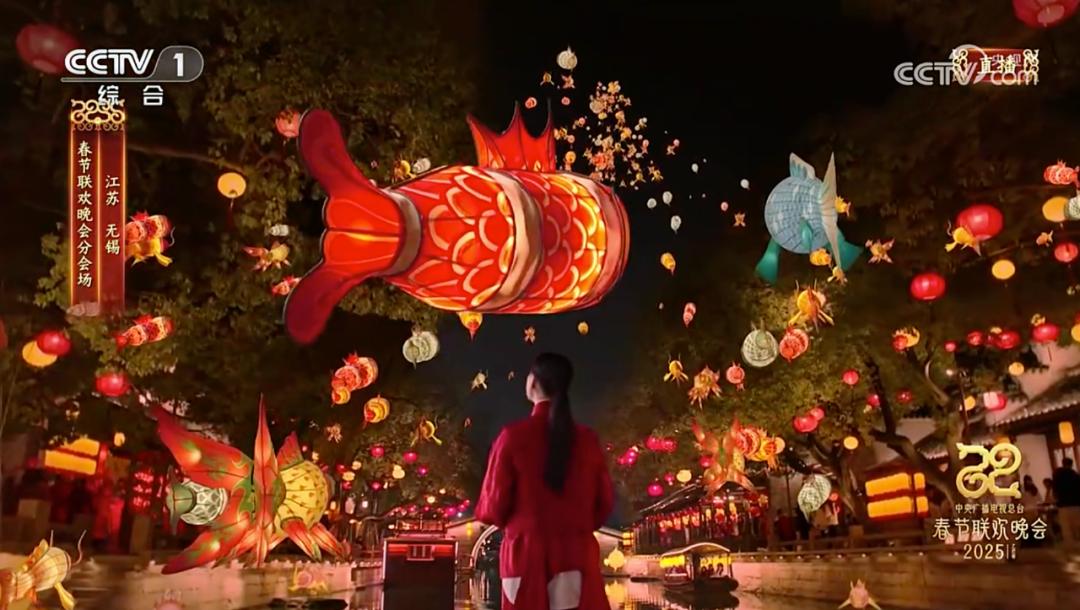 无锡是今年总台春晚的分会场之一。在这里,传统曲调勾勒江南水乡风情,沉浸式大戏与非遗巧妙结合,民乐与交响乐中西合璧。无锡分会场“舞台”从太湖延伸至古运河畔,船只从江南水乡行进到工业时代再到未来都市,仿若一场穿越古今的新春水上游园会。