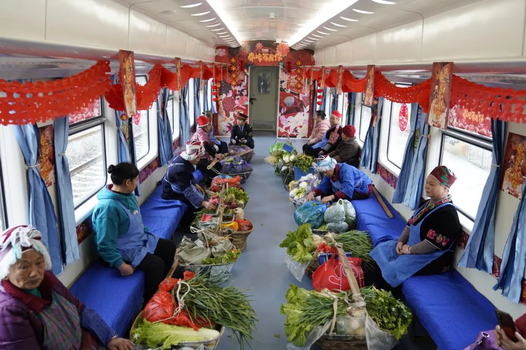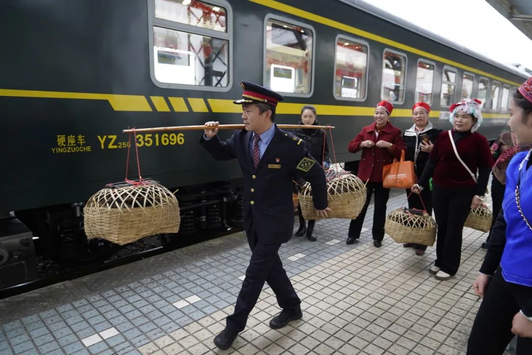 随着销路的不断畅通,胡贵川还牵头建起一个“线上”的“慢火车”超市,分享最新的菜品信息,有时也通过个人的社交账号发布农特产品信息,为部分商家和村民搭建“桥梁”,让有需要的商家直接联系购买。如今,在他的带动下,5640/5639次“慢火车”上的13个班组已全部加入到助农“带货”行列。“有需要的客户,有时也会提前找我预定,然后我们就把菜品分装好带到贵阳站,商家直接在站外提货。贵阳的菜价比凯里和列车上会略高一些,既帮老乡增收,还能减轻村民担子的重量。”胡贵川乐呵地说。