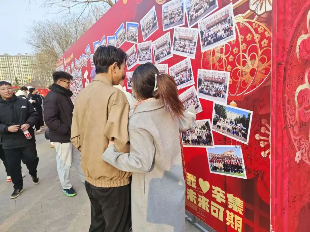 市职业技术教育中心毕业墙前也是热闹非凡,大家纷纷拿出手机,记录自己的青春时刻。