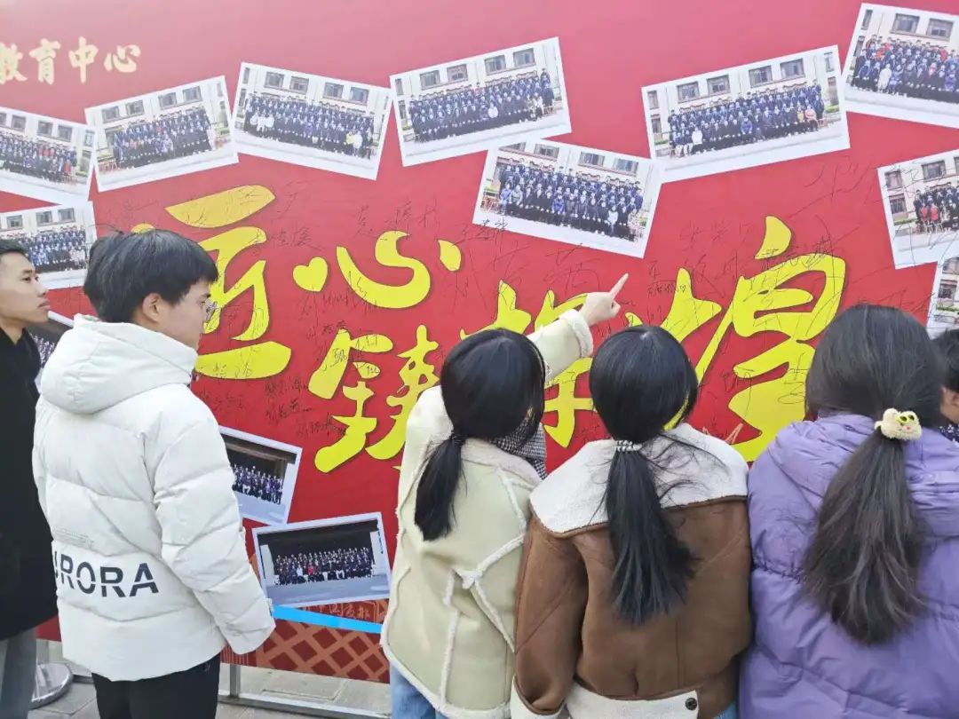 市育才中学的毕业生们也纷纷“回娘家”来,与曾经的任教老师畅谈往昔,并在毕业墙前留下美好祝愿。