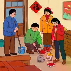 到了初六这天,人们就会来个大扫除,将污秽的厕所清扫干净,古时称为“挹肥”。还要“作糜、弃破衣、祀于巷”,就是把污秽杂物、破衣烂衫打扫出门外火烧祭祀。前些日子里积攒的垃圾,都被当作“穷鬼”的象征,通通扔出门去。如此则一年与穷无干,富贵有余。大年初七