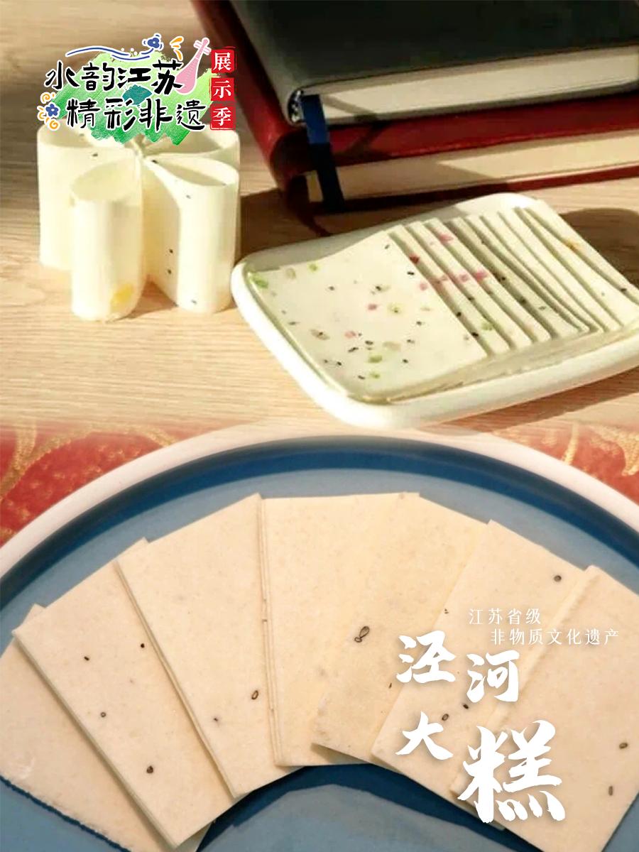 泾河大糕选用上等糯米、红枣、核桃仁等原料,反复蒸煮、细心切片。扬州人春节必吃泾河大糕,象征新一年生活如大糕般甜蜜、高升。