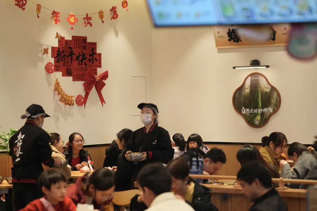 2025年1月29日,大年初一,顺盈时代广场某餐厅午饭时分座无虚席。清远日报记者 邱炜民 摄