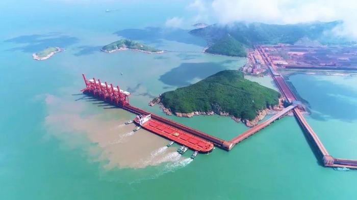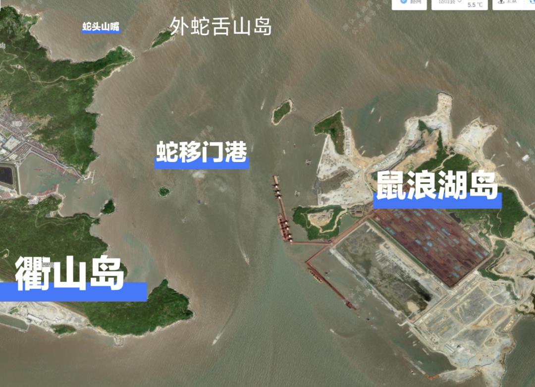 蛇移门港位置图,截自“浙江省地理信息公共服务平台”蛇移门本也是籍籍无名的水道。自2016年于水道东侧的鼠浪湖岛建成我国最大的矿石中转码头之后,2021年又将40万吨级的卸船泊位总长延伸至945米,满足了同时靠泊两艘40万吨矿船的需求,蛇移门由此成为事关全球港口货物吞吐量第一大港宁波舟山港的世界一流强港建设,事关打造国际铁矿石物流基地,稳定全球铁矿石供应战略大局的著名水道。