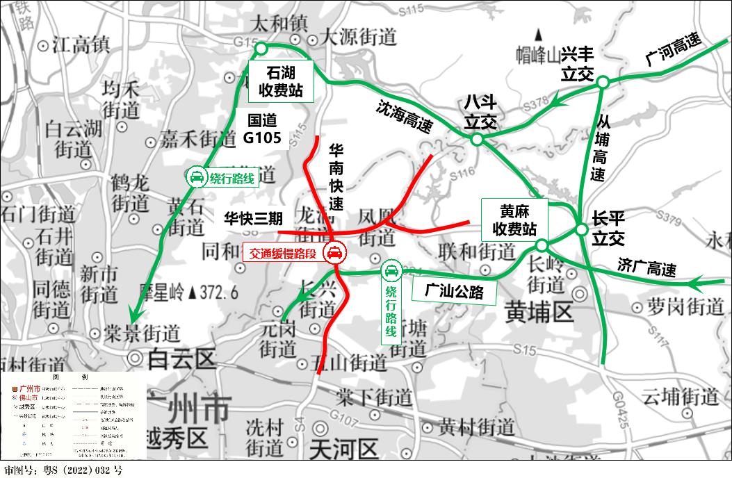 为避开春岗立交段行车缓慢,建议粤东地区返程旅客通过沈海高速(北二环)长平收费站转广汕公路进入市区,或进入广佛肇高速凤凰山段黄麻收费站转广汕公路进入市区。