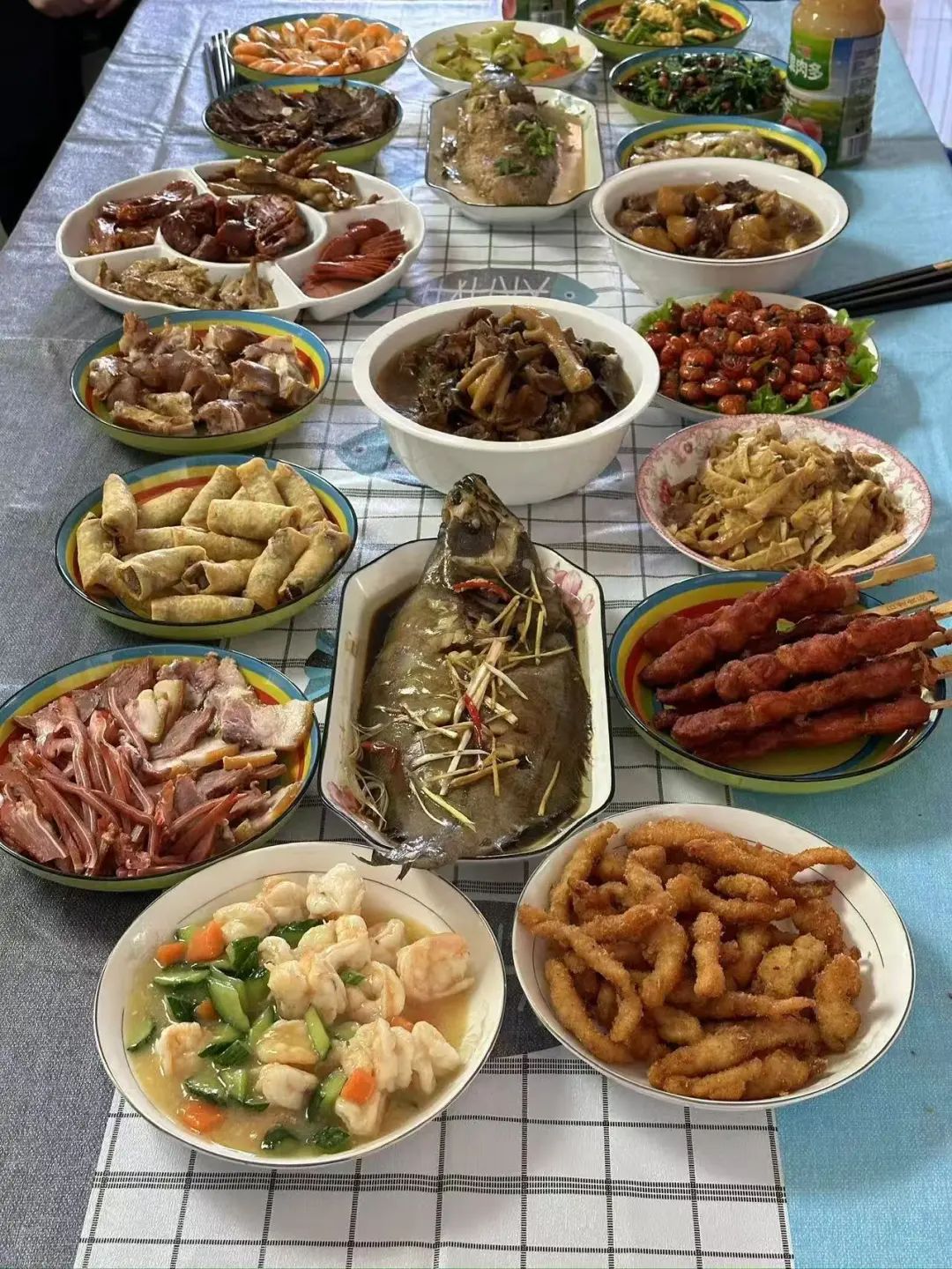 次日清晨,就要准备贴窗花、挂灯笼。小孩子则领到了包红包的小任务,忙得不亦乐乎。公公从除夕清早就守在厨房,蒸锅炖锅齐齐吐白雾,做成了年夜饭桌上的道道硬菜。暮色初临时鞭炮声次第炸响,映亮一张张脸,与远处别人家的烟花一同演奏新年“交响曲”。年初一照例要吃素线面,七百公里颠簸,都化在碗底这口热汤里。