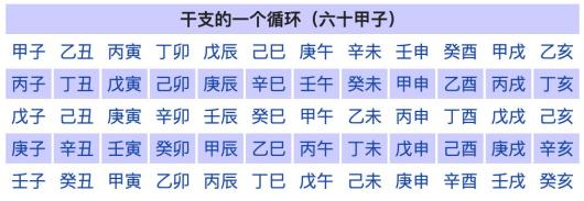 干支纪年就是以十个天干——甲乙丙丁戊己庚辛壬癸,和十二个地支——子丑寅卯辰巳午未申酉戌亥,双排结合往下数,第一年是甲子,第二年是乙丑,以此类推。因为一组是10个,一组12个,60年即一循环。